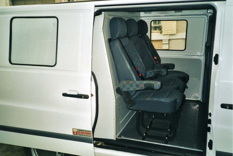 Cabine approfondie avec sièges fixes.